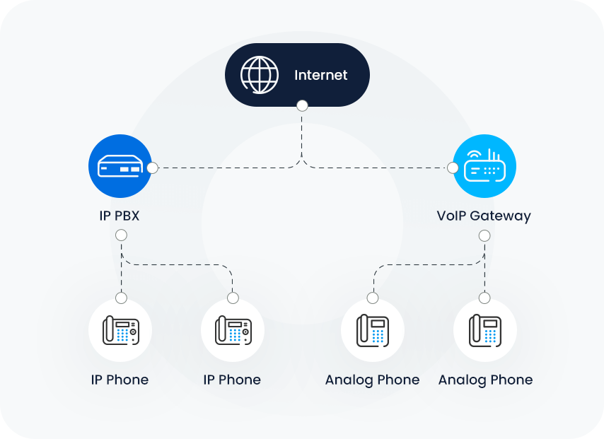 An on-premise IP PBX is a phone system that businesses install and operate on their premises. This setup grants businesses complete control over their phone system, offering reliability, stability, and enhanced system security.